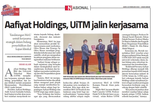 OLIVE HOUSE TURUT MEMBUAT PENYELIDIKAN BERSAMA HOSPITAL AWAM DAN SWASTA DI MALAYSIA