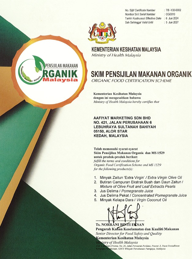 OLIVIE PLUS JUGA TELAH MENDAPAT PENGESAHAN PENSIJILAN ORGANIK KKM