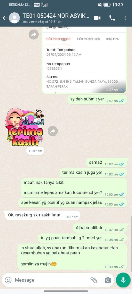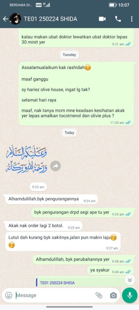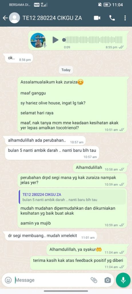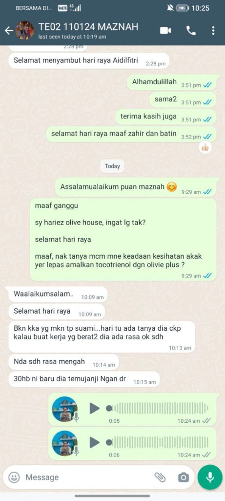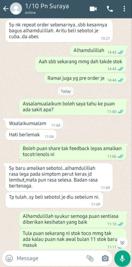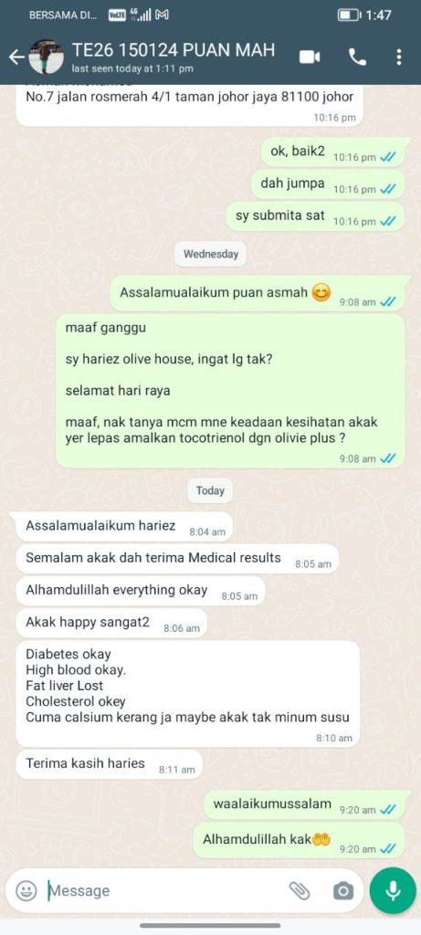“Dua tahun lepas, bukan sahaja nak jalan tetapi solat pun susah . Alhamdulillah sejak amalkan TOCOTRIENOL , sakit lutut dan pinggang dah tak sakit” Encik Badrul dari Sentul