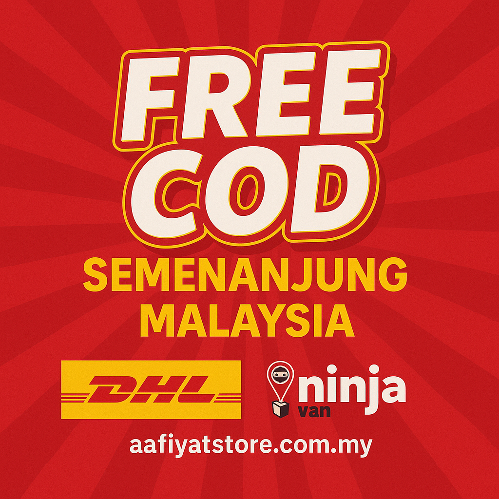 PERCUMA POSTAGE dan COD untuk SEMENANJUNG MALAYSIA dengan setiappembelian RM115 dan keatas dalam satu resit