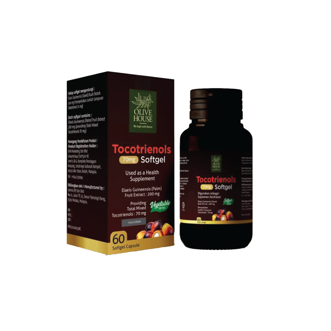TOCOTRIENOLS SOFTGEL dari Olive House ini merupakan supplemen makanan yang mengandungi derivatif Vitamin E iaitu Tocotrienol sebanyak 70mg dan Tokoferol dalam satu kapsul atau softgel.